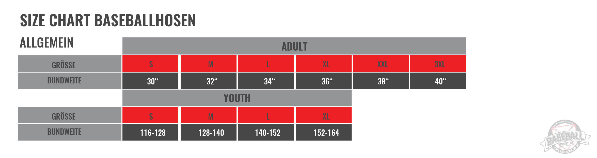 Die Größentabelle dient der allgemeinen Orientierung und nimmt Bezug auf die gängigen Hosen- sowie Kinderbekleidungsgrößen.